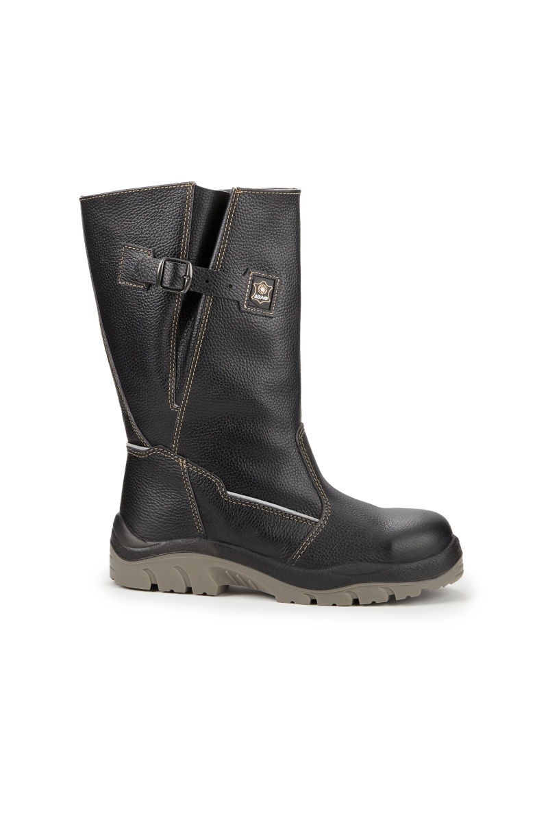 • Верх обуви полностью выполнен из натуральной кожи (юфть яловая толщиной 2,0 мм). Ремешок для регулировки объема голенища надежно фиксирует сапог на ноге.