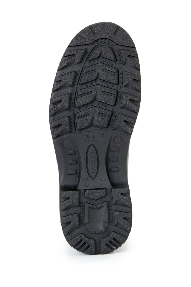 ■ Подошва: ПУ-Нитрил, двухслойная, внутренний слой из облегченного и амортизирующего полиуретана, ходовой слой из нитрильной резины, обладает повышенной прочностью, защищает от кратковременного контакта с нагретыми поверхностями (до +300°С), и обеспечивает защиту от агрессивных сред, имеет специальный протектор, эффективно препятствующий скольжению, морозостойкость подошвы до -45 °С.