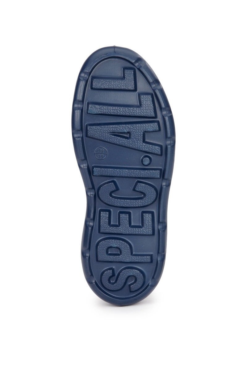 • Для удобства надевания модель снабжена специальными отверстиями-ушками по бокам голенища, внутренняя часть подошвы имеет массажные линии с точками.