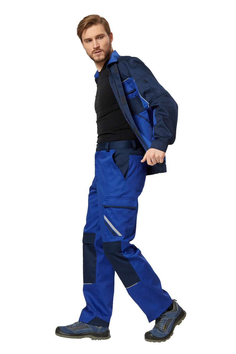 • Карманы: верхние боковые; 2 задних, правый с петлей-держателем для инструментов; удлиненный с малым; накладной боковой с двумя параллельными отделочными полосами с клапаном на контактной ленте