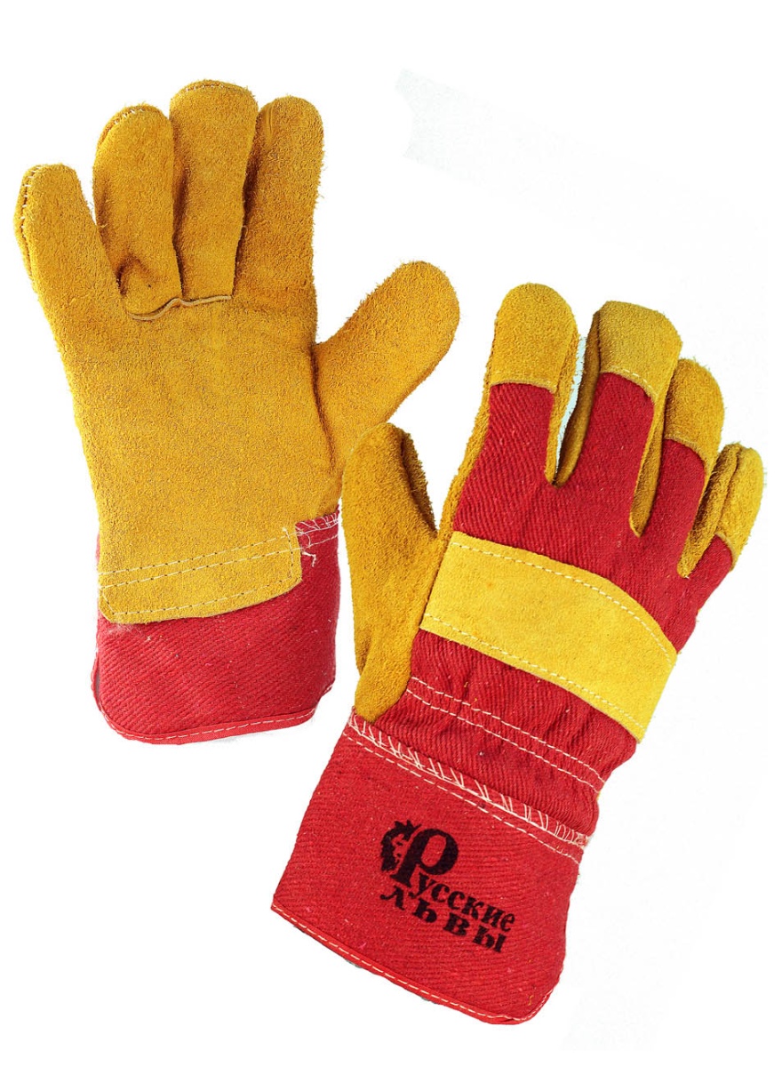 Перчатки спилковые, комбинированные, утепленные "Русские львы"